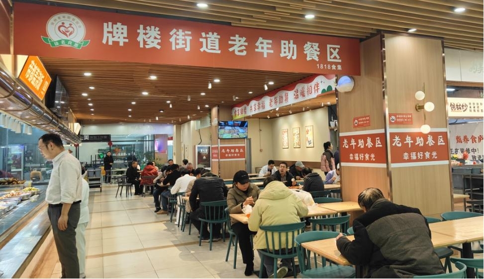 1818食集老年助餐點:商家入駐提升服務效率“銀齡食光隊”成員還來到鼓樓區牌樓街道1818食集老年助餐點。該助餐點的一大亮點是引入了企業參與運營,實行商家入駐模式,為老年群體提供更加多樣化的就餐選擇。這種商業化模式不僅提高了服務效率,還提升了老年人用餐選擇性和便利性。