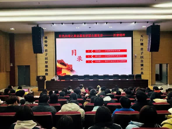 為深入學(xué)習(xí)貫徹習(xí)近平新時(shí)代中國特色社會(huì)主義思想,擴(kuò)大沂蒙精神的影響力,進(jìn)一步堅(jiān)定理想信念,傳承紅色基因,厚植愛國情懷,12月11日下午,陜西財(cái)經(jīng)職業(yè)技術(shù)學(xué)院紅色問道之旅宣講團(tuán)在學(xué)術(shù)報(bào)告廳開展沂蒙精神主題宣講活動(dòng)。活動(dòng)以“賡續(xù)紅色血脈,培育時(shí)代新人”為主題,由宣講團(tuán)成員張澤宇主講,共有200余名師生參與
