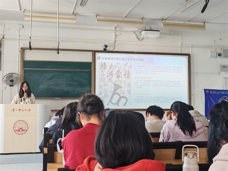 為深入學習貫徹習近平新時代中國特色社會主義思想和黨的二十屆三中全會精神, 2025年3月7日下午,“紅心向沂”志愿服務隊走進廣西師范大學,面向馬克思主義學院2023思想政治教育專業的同學開展了一場沂蒙精神宣講活動,以實際行動傳承和弘揚沂蒙精神,讓沂蒙精神在新時代綻放異彩。