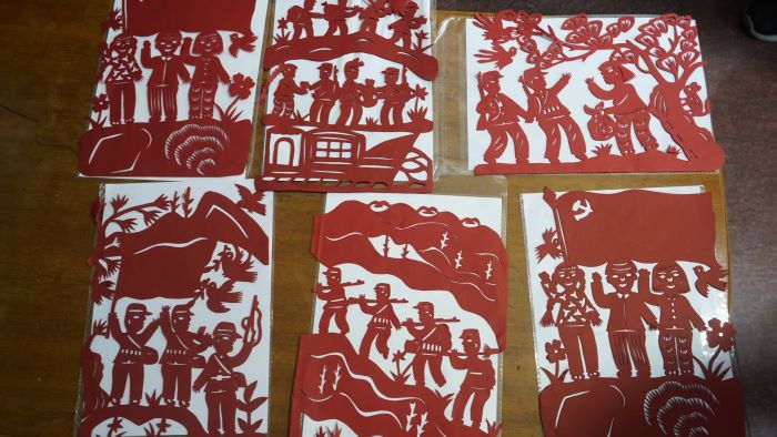 尋根問道,指尖上的紅色史詩 6月22日,豫北醫(yī)學院日新書院“紙藝薪傳”實踐團專程前往拜訪中國剪紙傳承人馬麗敏老師。馬老師在自家小院里向?qū)嵺`團展示了他的作品,其中承載黨史的紅色剪紙尤為震撼人心:寶塔山剪紙映照出延安精神,送軍行剪影展現(xiàn)了軍民深情,黨旗飄揚銘刻著建黨初心,國旗與天安門彰顯著國家尊嚴。