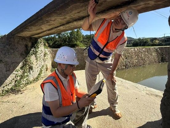 義方村的義方二、三橋和橋頭村無名小橋,雖規模不大,卻在村民日常出行與鄉村發展中作用關鍵。服務團抵達后,分工明確地開展工作:一部分成員用無損檢測設備探測橋梁內部結構,另一部分專注于外觀檢查,詳細記錄橋體狀況。同時,為恢復橋梁參數信息,團隊成員多方奔走,查閱村史館和村委會的檔案資料,與村里老一輩交流橋梁過往,還運用先進測繪儀器進行全方位測量。
