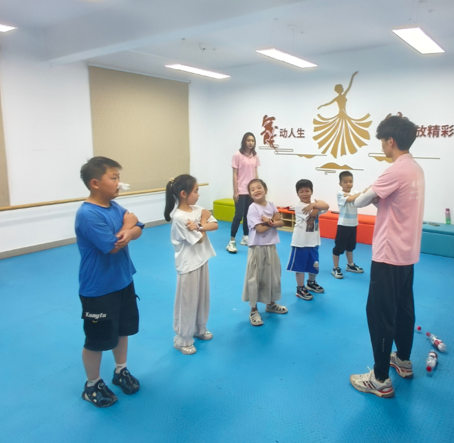 “流水不腐,戶樞不蠹,動也。”生命在于運動,對于精力充沛、生命力旺盛的小朋友們來說,體育游戲是最好的運動載體。7月4日下午,團隊教學組的成員們帶著提前備好的游戲工具,帶著小朋友們走向二樓的教室,開展一場充滿活力與趣味的體育游戲活動,其中主要有團隊成員精心設計的丟手絹、模擬扔保齡球、乒乓平衡訓練、毽子回家、抱拳回歸等體育游戲。這些體育游戲不僅讓小朋友們在運動中釋放了活力,鍛煉了身體協調能力與團隊合作意識,也展現了安徽師范大學暑期社會實踐團隊成員的責任與擔當。未來,實踐團隊還將繼續開展多樣化活動,為社區兒童帶來更多歡樂與知識,為社區發展注入青春力量。