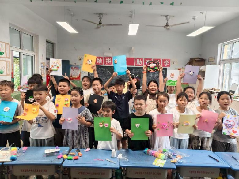 支教團隊結合自身專業優勢與當地文化特色,開設的九門特色課程各具特色。其中“甲骨飛揚”課程中,通過甲骨文繪畫、手工制作等方式,讓學生們感受古老文字的魅力,增強文化自信;“紅旗渠經典情景演繹”課程以紅旗渠精神為核心,從歷史文獻等經典作品中選材,剖析其中精神力量,打造情景劇本,引導學生集體演繹,沉浸式體驗紅旗渠建設歲月,種下正確的歷史觀、民族觀和國家觀。“筆墨共敘三筆字”課程,指導學生練習鋼筆字、毛筆字和粉筆字,領略書法藝術的韻味,提升書寫能力;“字正腔圓‘話’中國”課程,通過繞口令、朗誦等形式,幫助學生說好普通話,規范語言表達;“妙手生輝”課程專注于民間剪紙和泥塑藝術,學生們在動手實踐中,傳承和弘揚優秀傳統文化;“繪聲繪景繪錦色”課程基于弘揚國粹經典與守護少兒心理健康成長的目的,深度融合京劇臉譜、水墨丹青等中華優秀傳統文化藝術,搭建起傳統文化與心靈成長的橋梁。“向陽未老,溫暖花開”課程致力于以溫情傳遞力量,通過開展關愛老年群體的活動,讓老人們感受社會關懷,傳承中華民族尊老、敬老、愛老的傳統美德。