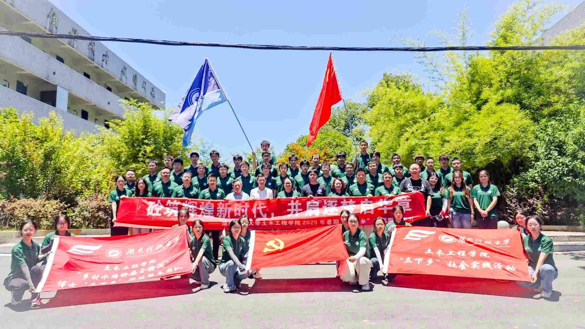▲湖南科技大學土木工程學院 “鄉村安全水路橋及能源評估博士暑期科技服務團隊” 在土木樓前集合