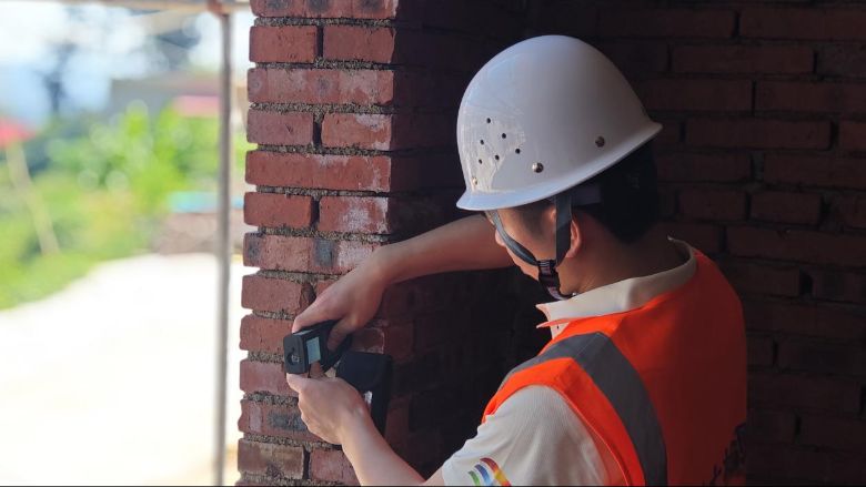 完成新建房檢測后,團隊轉至既有農房區域。對70年代磚房的強度測試顯示,雖經歷數十年風化,部分墻體強度仍保持安全閾值。團隊同步建立"一房一檔"電子臺賬,精準記錄房屋結構信息,為后續加固改造提供科學依據。