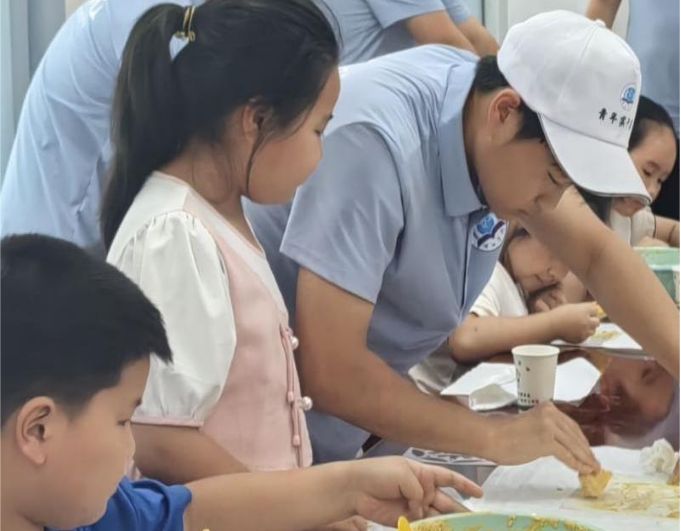 孩子們稚嫩的小手緊握木柄刮刀,將黃豆灰漿料均勻刮過刻花紙版。一堂別開生面的非遺體驗課讓10余名兒童化身“小小傳承人”,在靛藍浸染間觸摸千年工藝的脈動。