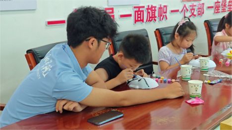 (圖為志愿者教學兒童繪制臉譜 張謝景彤攝)