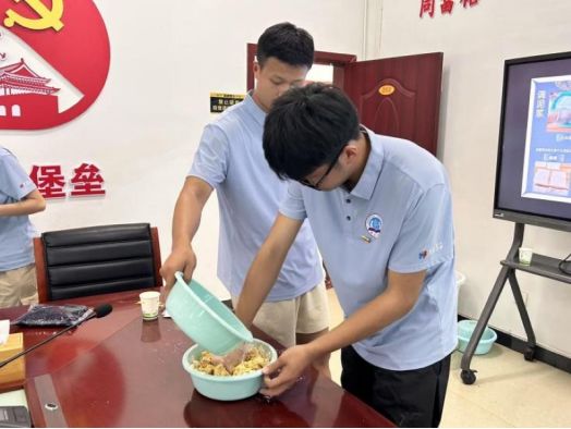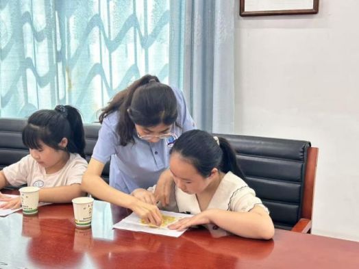 藍印花布體驗課成為當日亮點。團隊成員先向孩子們講解這項國家級非遺的歷史與工藝,隨后帶領大家動手實踐:按照特定比例調制石灰粉、黃豆粉與水混合的泥漿,孩子們在團隊成員的協助下,親手感受刮涂泥漿的過程,近距離觸摸非遺技藝的溫度。