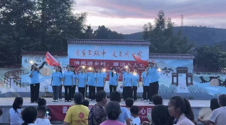 當晚,團隊在村文化廣場舉辦“法治鄉村行”文藝匯演。歌曲、舞蹈、小品等節目輪番上演,現場掌聲不斷。演出巧妙融入法律常識、防溺水措施、禁毒知識等科普內容,如通過演繹貼合村民日常生活的情景劇,讓村民了解法律常識。用快板口訣傳授法律知識,讓村民在歡笑中掌握實用技能。