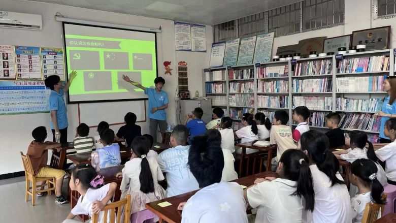 本網訊(通訊員 劉寧)為傳承愛國主義精神,在童心中厚植愛國情懷,7月7日,懷化學院法學與公共管理學院“三公”志愿服務團走進懷化市麻陽苗族自治縣龍升社區,開展“祖國旗幟在我心”主題愛國特色教育活動,帶領當地小朋友們在歷史回溯與實踐體驗中感悟旗幟背后的紅色精神。
