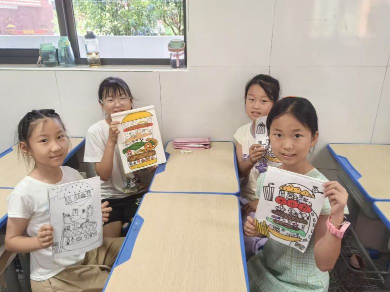 舞蹈室里,志愿者帶領(lǐng)同學(xué)們從手部動作到腳步動作,從羞澀僵硬,到能隨著伴奏熟練起舞。在旋律中培養(yǎng)協(xié)調(diào)性與節(jié)奏感,綻放童年活力。美術(shù)課上,志愿者帶領(lǐng)同學(xué)們通過色彩與線條認(rèn)識世界、表達(dá)內(nèi)心,如以“漢堡里的奇妙天地”為主題,通過展示多樣漢堡的造型啟發(fā)靈感,再指導(dǎo)孩子們用畫筆將房屋、動物等元素融入漢堡結(jié)構(gòu),同學(xué)們在一筆一劃中釋放創(chuàng)意。在折紙的藝術(shù)創(chuàng)作中提升審美、學(xué)會觀察與表達(dá)。