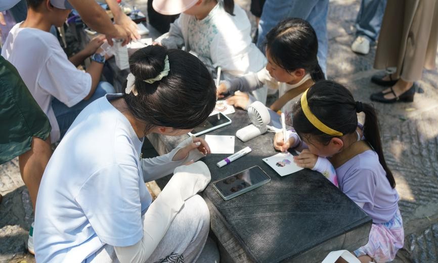 活動現場人頭攢動,團隊精心策劃的"非遺知識競答""簡筆十三朝繪制"等特色志愿服務項目,吸引了近百名游客熱情參與。在非遺知識競答環節,參與者通過趣味互動深入了解傳統文化的發展脈絡;簡筆繪制活動則讓游客們用畫筆勾勒十三朝古都的歷史輪廓,在創作中感受城市的文化底蘊。活動現場洋溢著歡聲笑語,特別是青少年參與者們專注投入的神情,展現了新一代對傳統文化的濃厚興趣。