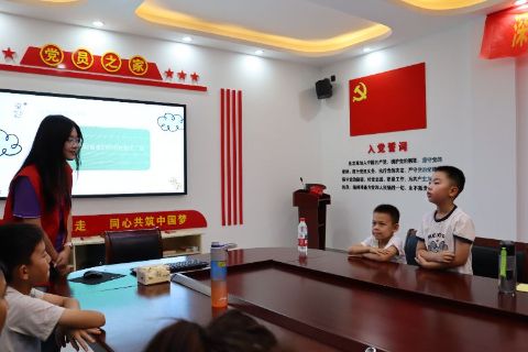 圖為7月2日,“青禾逐光”實(shí)踐團(tuán)隊(duì)成員袁藝洋傾聽(tīng)孩子們對(duì)于“表達(dá)”的理解,趙雨然供圖