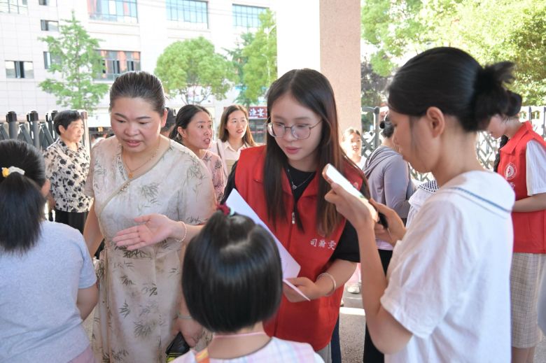 圖為報(bào)名時(shí)志愿者讓學(xué)生家長(zhǎng)進(jìn)入家長(zhǎng)群。多彩大學(xué)生網(wǎng)通訊員易倩攝