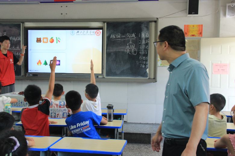 圖為同學(xué)們上課回答志愿者老師問(wèn)題。多彩大學(xué)生網(wǎng)通訊員王文秀攝