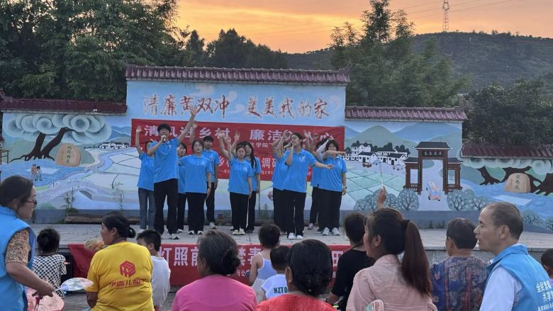 本網訊(通訊員 史騏瑋 劉經德)2025年7月8日,懷化學院法學與公共管理學院“三公”志愿服務團攜手懷化市苗族自治縣黃雙沖村委為村民們獻上了一場別開生面的以“法治映初心,平安筑鄉村”為主題的普法晚會。法律知識被編織進快板的節奏、融入小品的詼諧、劃入童謠的悠揚,悄然播撒進鄉村沃土。