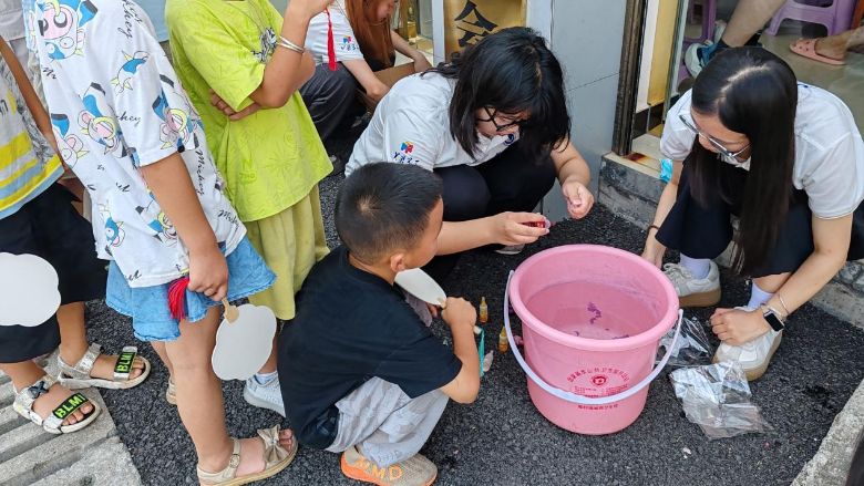本網(wǎng)訊(通訊員 湛鑫園)為傳承中華優(yōu)秀傳統(tǒng)文化,讓非遺技藝在青少年心中生根發(fā)芽,2025年7月8日,懷化學(xué)院“三公”志愿服務(wù)團(tuán)走進(jìn)湖南省麻陽苗族自治縣龍升社區(qū),為社區(qū)小朋友帶來了一堂以非遺漆扇為主題的多彩課程。志愿者們以“以漆為筆,以水為畫;一半人為,一半天成”為理念,通過生動(dòng)講解與趣味實(shí)踐,讓孩子們近距離感受傳統(tǒng)漆藝的獨(dú)特魅力。