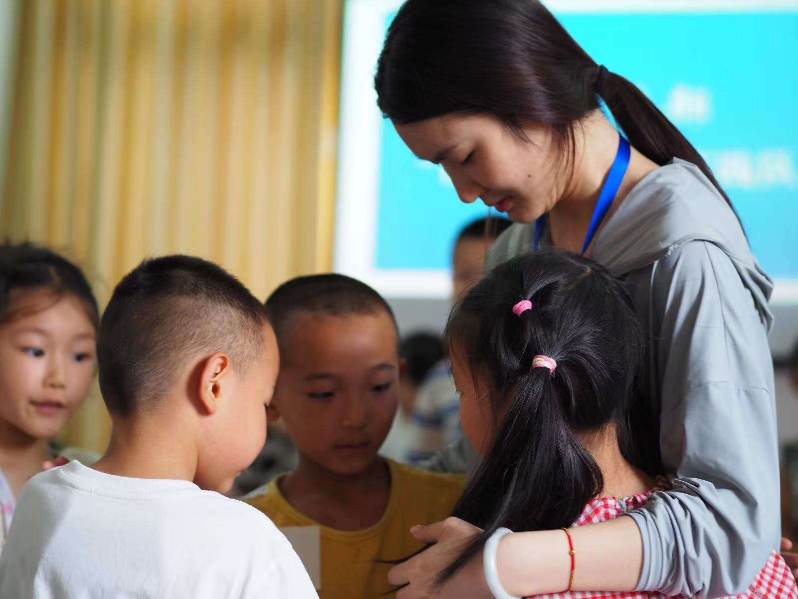 (圖為實(shí)踐隊(duì)員與孩子們一起擁抱。劉晶晶 供圖 )