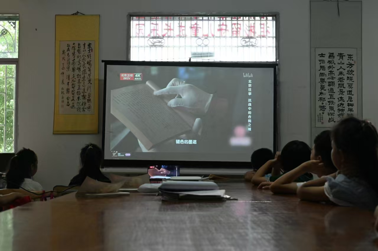 圖五:孩子們觀看愛國教育影像