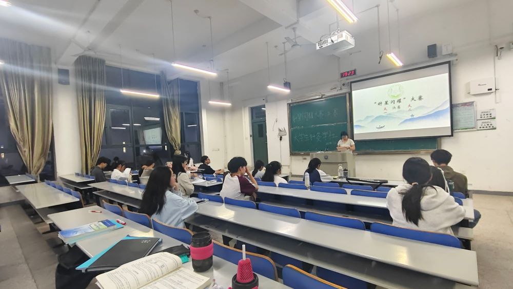 當晚的比賽現場座無虛席,不僅吸引了眾多中醫愛好者前來觀賽,更有針灸推拿學院、中醫學院的多位專業教師擔任評委。比賽在針灸學社指導老師李教授的致辭中拉開帷幕,他勉勵參賽選手們以賽促學,在比賽中傳承中醫文化,展現新時代中醫學子的風采。