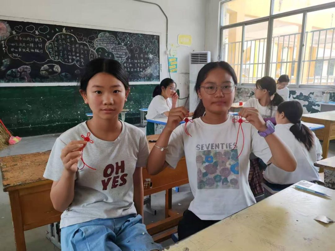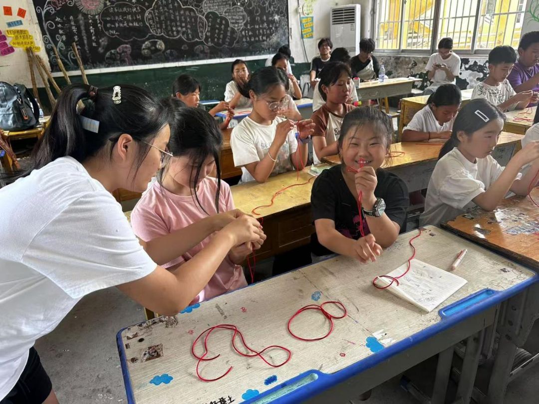 下午,龍熙老師的手工課從中國(guó)結(jié)的起源與發(fā)展講起,從“結(jié)”的原生語(yǔ)境延伸到“結(jié)”在中華傳統(tǒng)文化中的寓意與象征。在中國(guó)結(jié)的流變與發(fā)展中,龍老師帶領(lǐng)孩子們感受了古代勞動(dòng)人民的智慧,體會(huì)到了經(jīng)濟(jì)文化與工藝技法的進(jìn)步。“紙上得來(lái)終覺(jué)淺,絕知此事要躬行”,在認(rèn)識(shí)完中國(guó)結(jié)之后,龍老師將復(fù)雜的工序拆解成簡(jiǎn)單的小步驟,手把手帶著孩子們成功地編織了精致雋秀、寓意吉祥的中國(guó)結(jié)。這不僅是一次技能傳授,更是用優(yōu)秀文化豐盈孩子們內(nèi)心的過(guò)程。要用親身的實(shí)踐教會(huì)他們化繁為簡(jiǎn)、有條不紊地解決問(wèn)題,要用令人眼前一亮的成果告訴他們——世上無(wú)難事,只怕有心人。