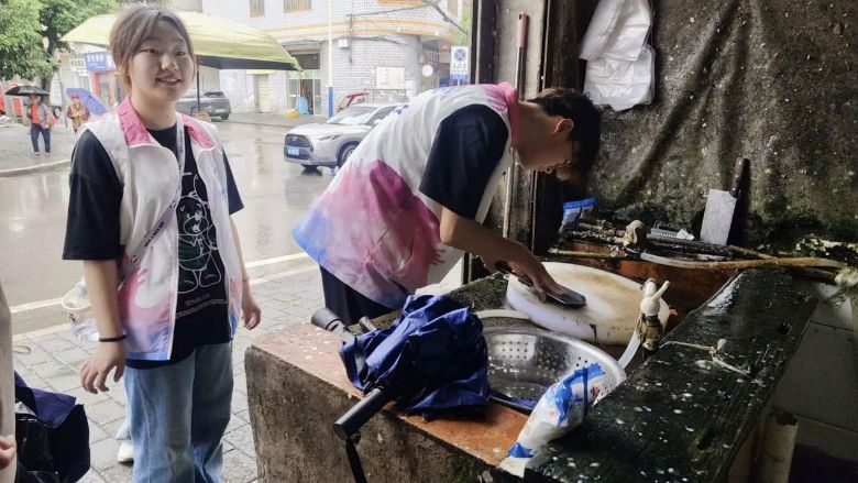 細雨朦朧的街頭,長江科創(chuàng)學院的志愿者們身影匆匆。在賣魚攤位前,一位志愿者專注俯身,幫賣魚嬢孃打磨刀具。雨水打濕地面,卻沒讓這份認真打折,刀刃在反復擦拭中漸顯光亮,嬢孃在一旁笑著念叨:“剛剛還怕你們把我刀給磨壞了,結果沒想到你們是專業(yè)的呀!” 旁邊志愿者在一旁陪村民嘮嘮家常,聽他們講述鄉(xiāng)村故事,從收成的期盼到鄰里的溫情,把真誠關懷融入每一句交流。長江科創(chuàng)學院志愿者們用實際行動,為鄉(xiāng)村幫扶添一抹溫暖色彩。