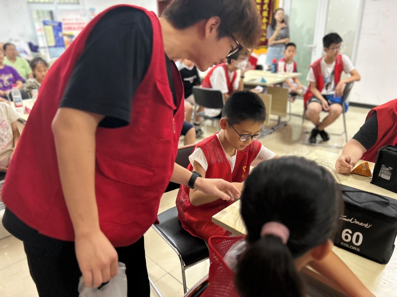 活動尾聲,實踐隊協助社區工作人員開展助老志愿服務主題冰箱貼制作活動,并為孩子們提供指導。現場充滿歡聲笑語,孩子們制作的冰箱貼上印有小紅心,象征著生命之光,點亮了他們的快樂與想象。