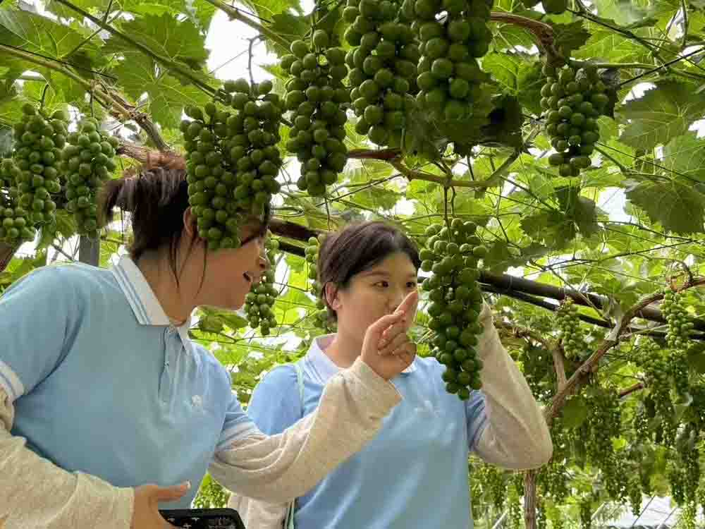 植物組聚焦葡萄生物學(xué)特性,通過物候觀測(cè)系統(tǒng)記錄“陽光玫瑰”“巨峰”等品種的萌芽、開花、膨果等關(guān)鍵生長周期,系統(tǒng)繪制葉片鋸齒形態(tài)、果實(shí)著色梯度等20余項(xiàng)特征圖譜,全面掌握葡萄生長習(xí)性、適生環(huán)境及外觀形態(tài)的演變規(guī)律。