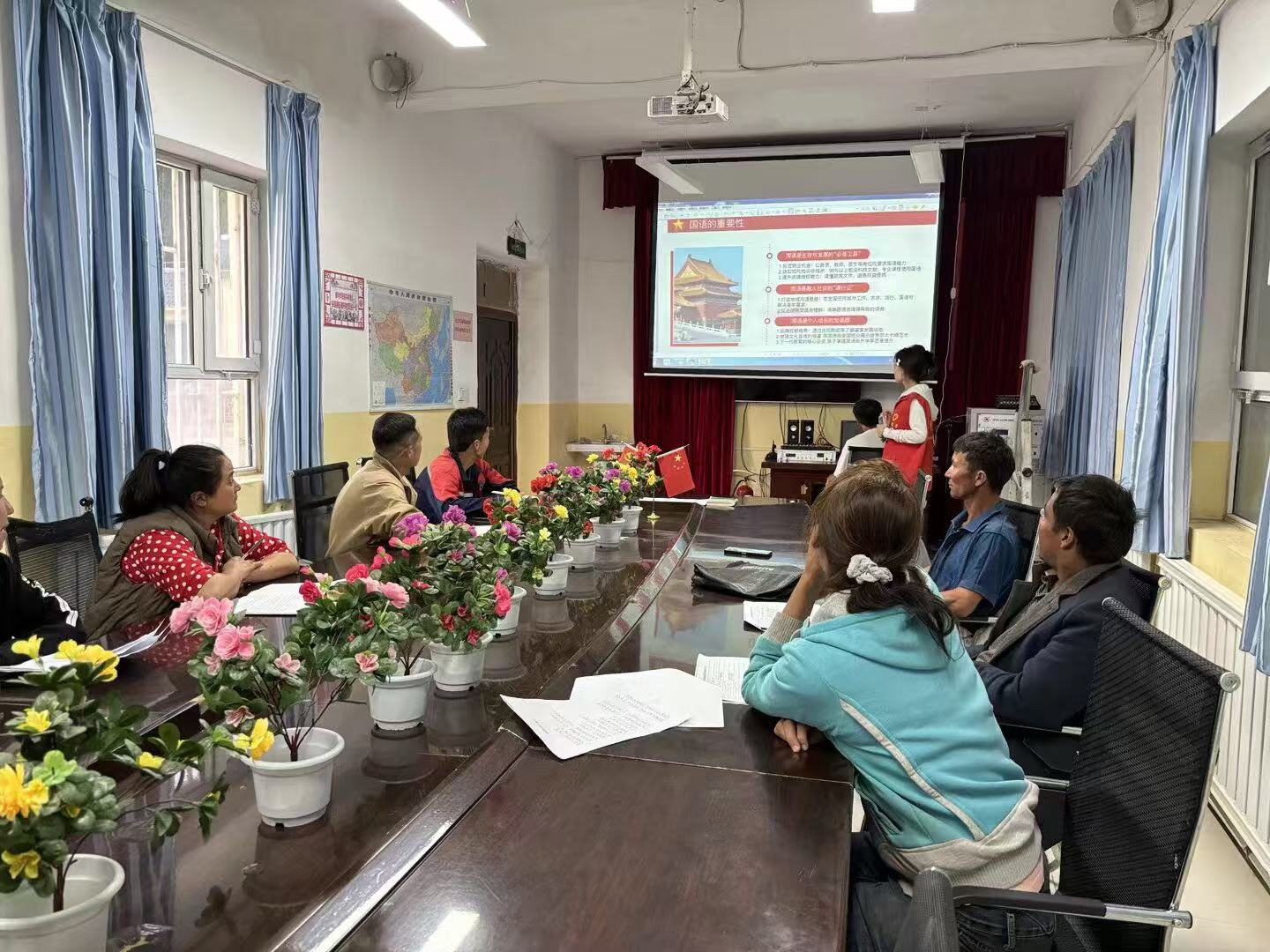 升旗儀式結束后,村干部們移步至村匯報廳,參加由村委會與“紅石榴 青春逐夢”三下鄉團隊組織的普通話推廣宣講會。宣講中,,“紅石榴 青春逐夢”三下鄉團隊結合農村生產生活實際,讓會維語的成員用通俗易懂的語言講解了推廣普通話的重要性:普通話是生存與發展的“必備工具”,公務員、教師等崗位對國語能力有明確要求,90%以上的前沿科技文獻和專業課程也以國語呈現,學好普通話能幫助村民更好地獲取知識、維護權益。在基礎問候語學習環節中,現場還通過對比漢語、維吾爾語、哈薩克語的表達方式,幫助村民加深記憶。
