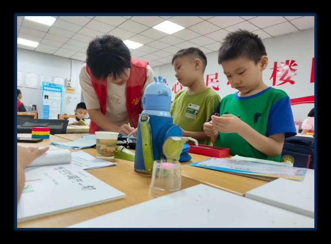 “愛心托管班”為期一周的課程安排豐富而充實。清晨的固定項目是活力晨練與榜樣故事分享,隨后則是精心設計的書法、手工、美術、魔方等多樣課程,更有戶外研學之旅,旨在為孩子們的假日生活涂抹上斑斕的色彩。