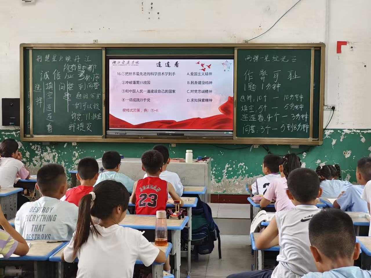 本網訊(通訊員:艾梓鈺 廖慧)7月1日至12日,丹江口市丁家營鎮小學的暑期課堂里熱鬧非凡——湖北醫藥學院“星火”暑期社會實踐隊帶著“荊楚星火映丹江,兩彈一星綻光芒”的主題活動走進校園,為3至5年級的學生們帶來了一場融合紅色教育與科學探索的暑期盛宴。