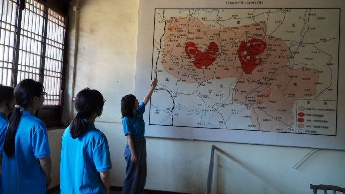圖為指導(dǎo)老師為實(shí)踐團(tuán)成員介紹長(zhǎng)征路線。郎一凡供圖
