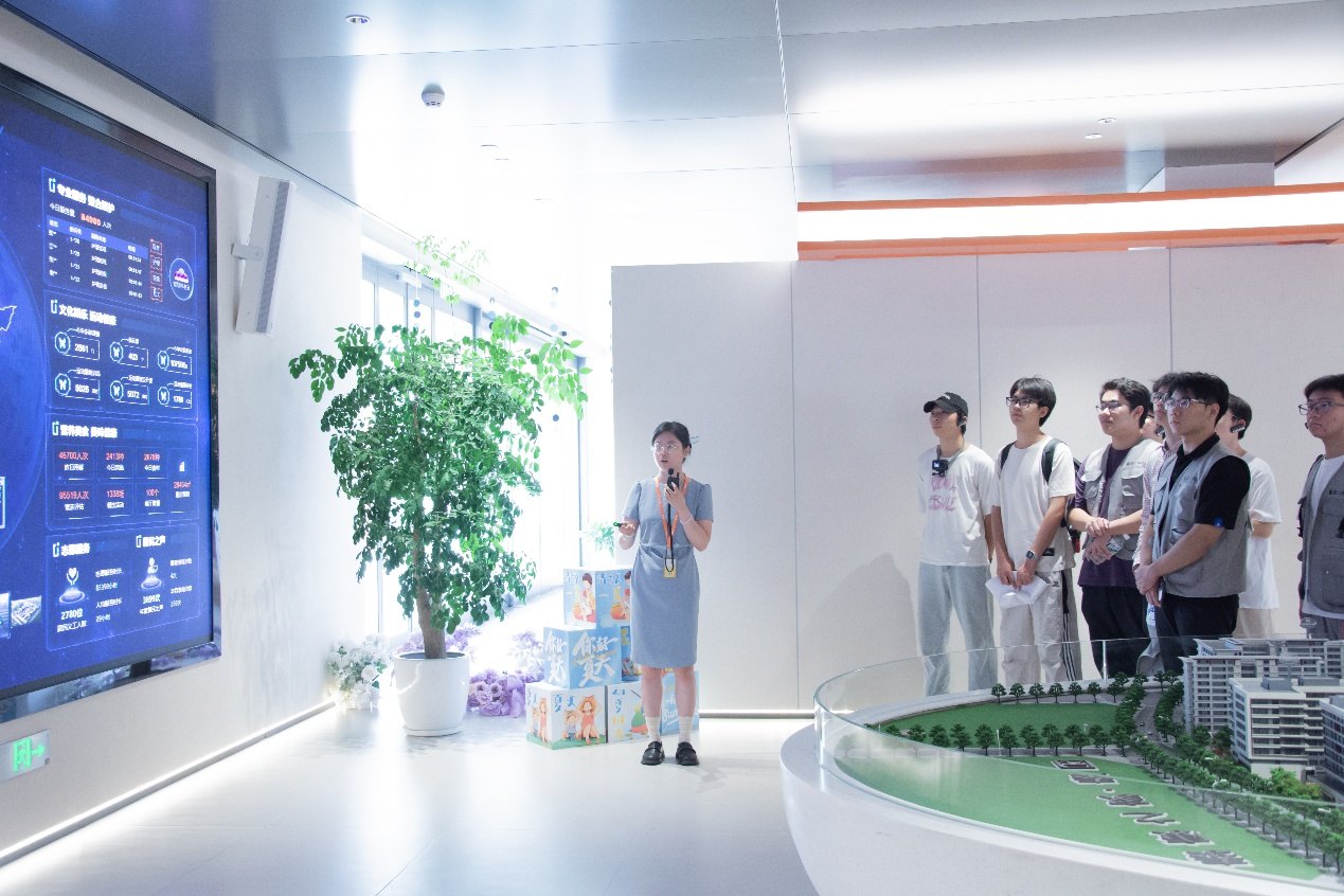在項目負責人帶領下,實踐隊參觀了“泰康之家·秦園”智慧項目展廳及施工現場。隊員們實地了解了園區安全報警、營養膳食搭配、服務水平檢測等智能化系統的應用,切身感受了現場安全管理和規范作業情況,深刻認識到BIM技術與建筑機器人在工程建設中的重要作用。