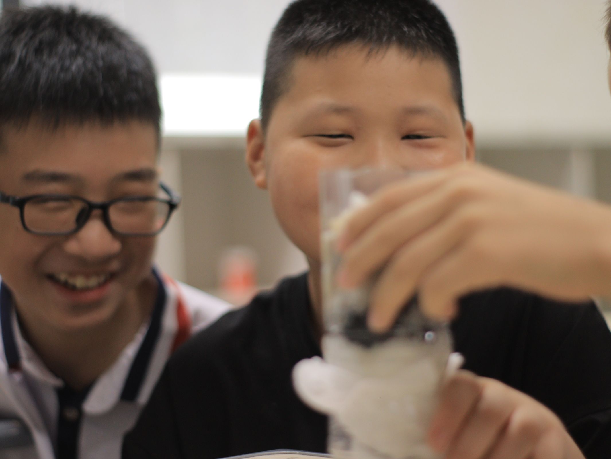 (孩子們積極參與制作簡(jiǎn)易凈水裝置)