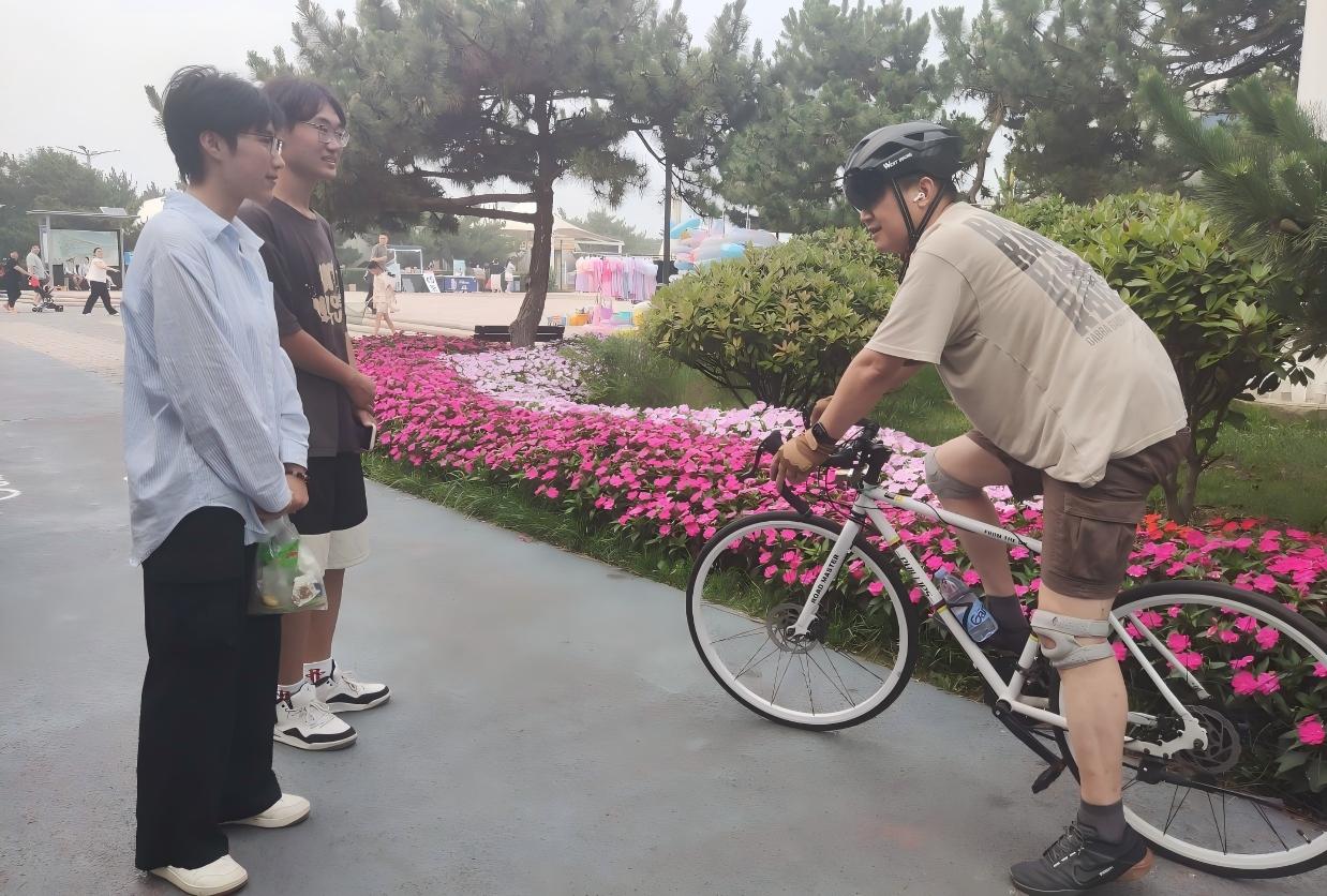 圖為實踐隊員采訪騎行愛好者。劉晗悅 供圖