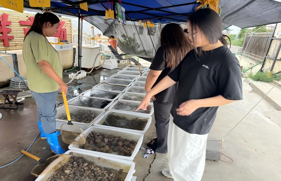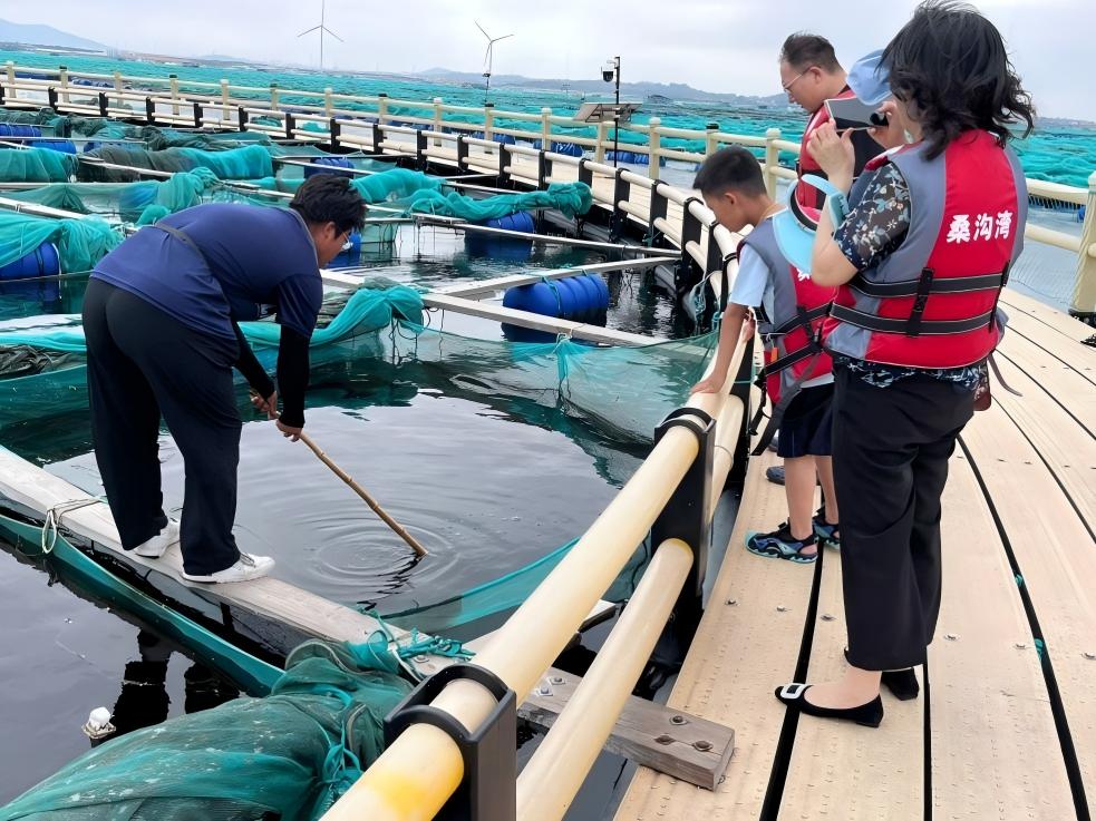 圖為實踐隊員在桑溝灣海鮮牧場了解藍色膳食。中國青年網通訊員 周鈺晴 供圖