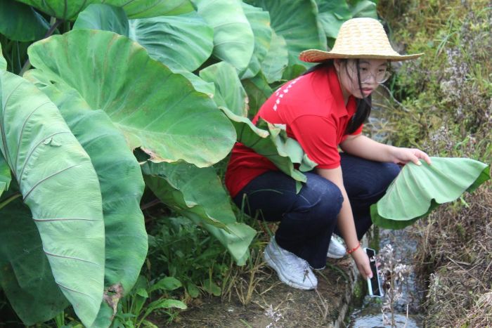 圖為實踐隊隊員在樟洋村周邊采集自然聲音。吳小涵 供圖