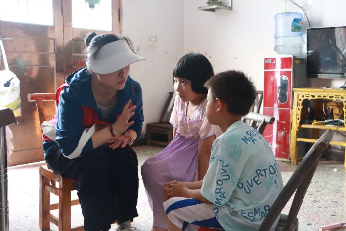 圖為實踐團成員給兒童宣傳未成年人保護法 冷陳 供圖
