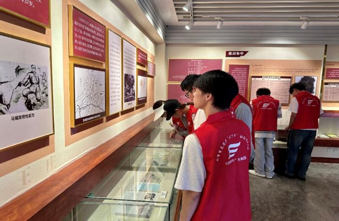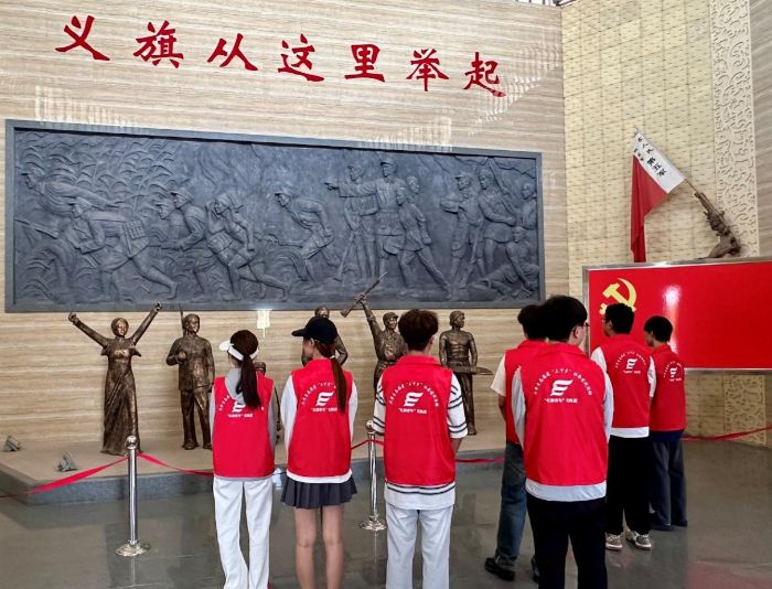 展廳中,“日軍暴行”板塊的史料讓大家深刻體會到侵略者的殘暴,而“軍民魚水情”板塊里群眾踴躍支援起義部隊的故事,展現了中華民族同舟共濟的磅礴力量。起義領導者拋頭顱、灑熱血的英雄事跡,更讓實踐團成員深受震撼,不少成員在參觀過程中不時駐足沉思,眼中滿是對革命先輩的敬佩。