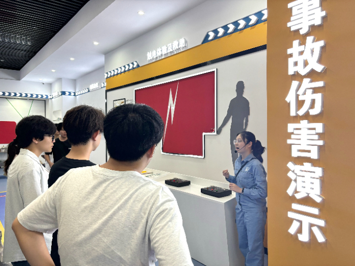 最后,實踐隊來到安全解說區域,在實訓基地講師楊玉婷的引導下,隊員們積極參與安全防范方法學習和設施體驗,在輕松愉快的氛圍中掌握了化工產業相關安全知識。