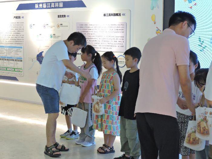 滿載而歸,夢想續航 本次夏令營特別設立積分激勵機制。儀式上,浙江工商大學公共管理學院社會工作與社會保障系主任嚴霄云老師、錢塘團區委志愿者工作指導中心孫偉婷主任,以及臨江高科園產業施森軍書記為表現優異的小營員們頒發了象征榮譽與鼓勵的結營獎品。隨后,家長們在志愿者的引導下參觀了課程手作展區并認領了孩子們的手工作品。