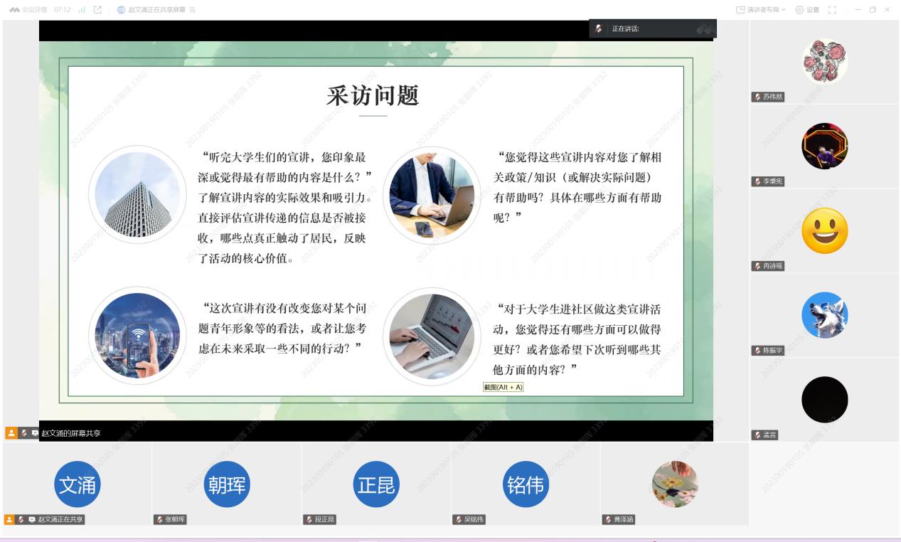其次是采訪問題。同學們要對實踐地點的負責人、工作人員等進行訪談,了解他們的想法和體驗。通過傾聽不同工作人員和人民群眾的聲音,我們才能更全面地認識大學生進社區的意義。