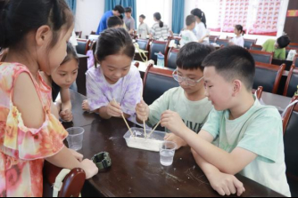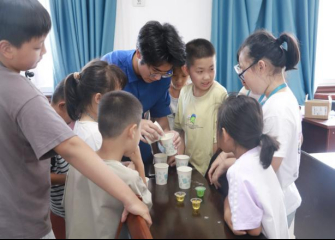 “遇強則強,遇弱則弱”來形容非牛頓流體是再好不過的了,輕輕觸碰時柔軟如絲綢,用力敲打時卻堅硬如鐵。在隊員們的指導下小朋友們反復實驗,小心翼翼地調配淀粉與水的比例,終于找到了最佳配比。他們將調配好的非牛頓流體倒入容器中,向周圍同學一起分享成功的喜悅,一起感受科學的魅力。
