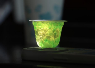 從戶外回到教室,孩子們還沒來得及惋惜時間飛逝未能玩得痛快,注意力就被成員們手中的各種原料深深吸引住了。小蘇打打底,食用油做媒介,將色素與白醋混合后倒入杯中便可看到那般神奇的現象了。