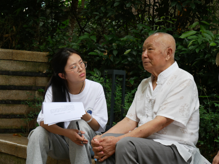 (圖為團(tuán)隊(duì)成員采訪老人 游燦攝)
