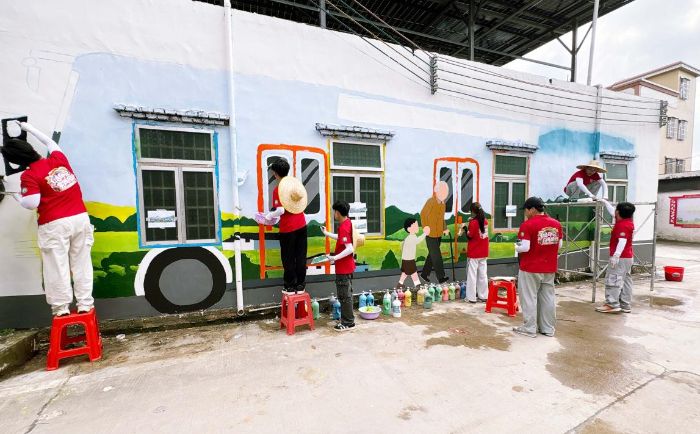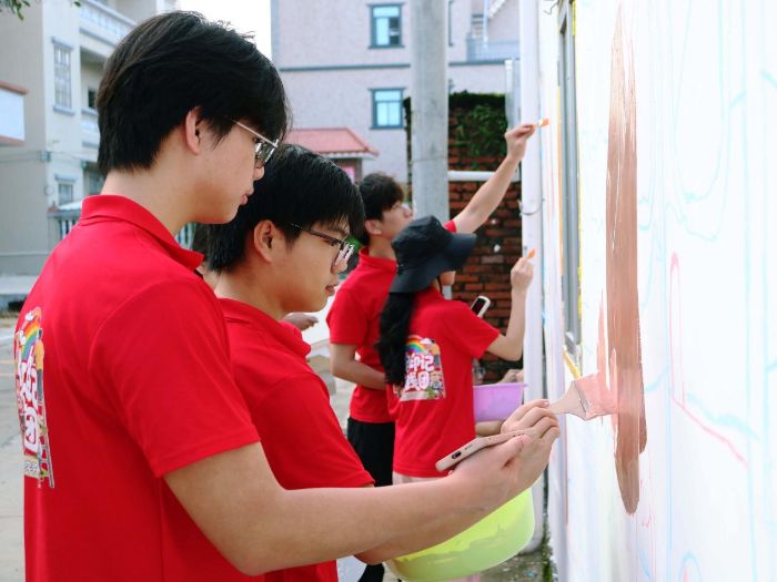 (圖為紅色印記實踐團成員們墻繪過程 陳露露攝)