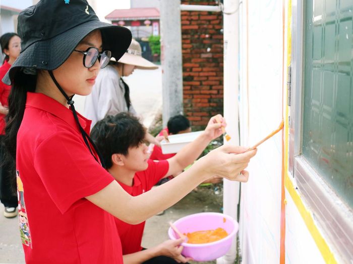 七月盛夏,烈日當空。紅色印記實踐團的成員們卻毫無怨言,擼起袖子,迎著高溫開始繪制文化墻。他們手持畫筆,細心描摹線條,反復調色、上色、修飾……每一個步驟都凝聚著汗水與匠心。哪怕汗水順著臉頰滴落,他們依舊專注于手中的畫筆,用堅守和毅力詮釋青年一代的責任與擔當。“雖然辛苦,但能為鄉村美化出一份力,我們感到無比自豪。”團隊成員們紛紛表示,這段經歷不僅鍛煉了專業技能,更讓他們深刻體會到服務社會、奉獻鄉村的意義。