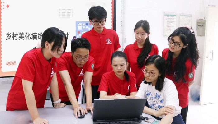 (圖為師生針對墻繪初稿進行探討 黃海遙攝)