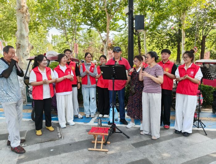 圖為實踐團(tuán)隊在濟(jì)南市與市民合唱紅歌。張光瑜攝