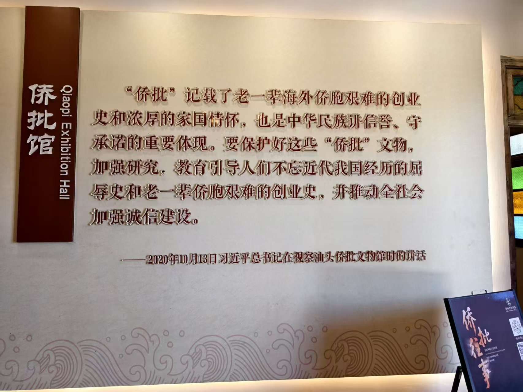 接著,講解員帶領著隊員們參觀了當地的僑批館,僑批檔案已成為被收入《世界記憶名錄》的檔案,在僑批館泛黃的信箋上飽含著溫情,僑胞們通過海上商路匯回的不只是銀元,更是剪不斷的血脈臍帶。隊員們深切地體會到了文化與精神的內核,它們跨越萬水千山,留住了時代底蘊,成為永不磨滅的歷史記憶。